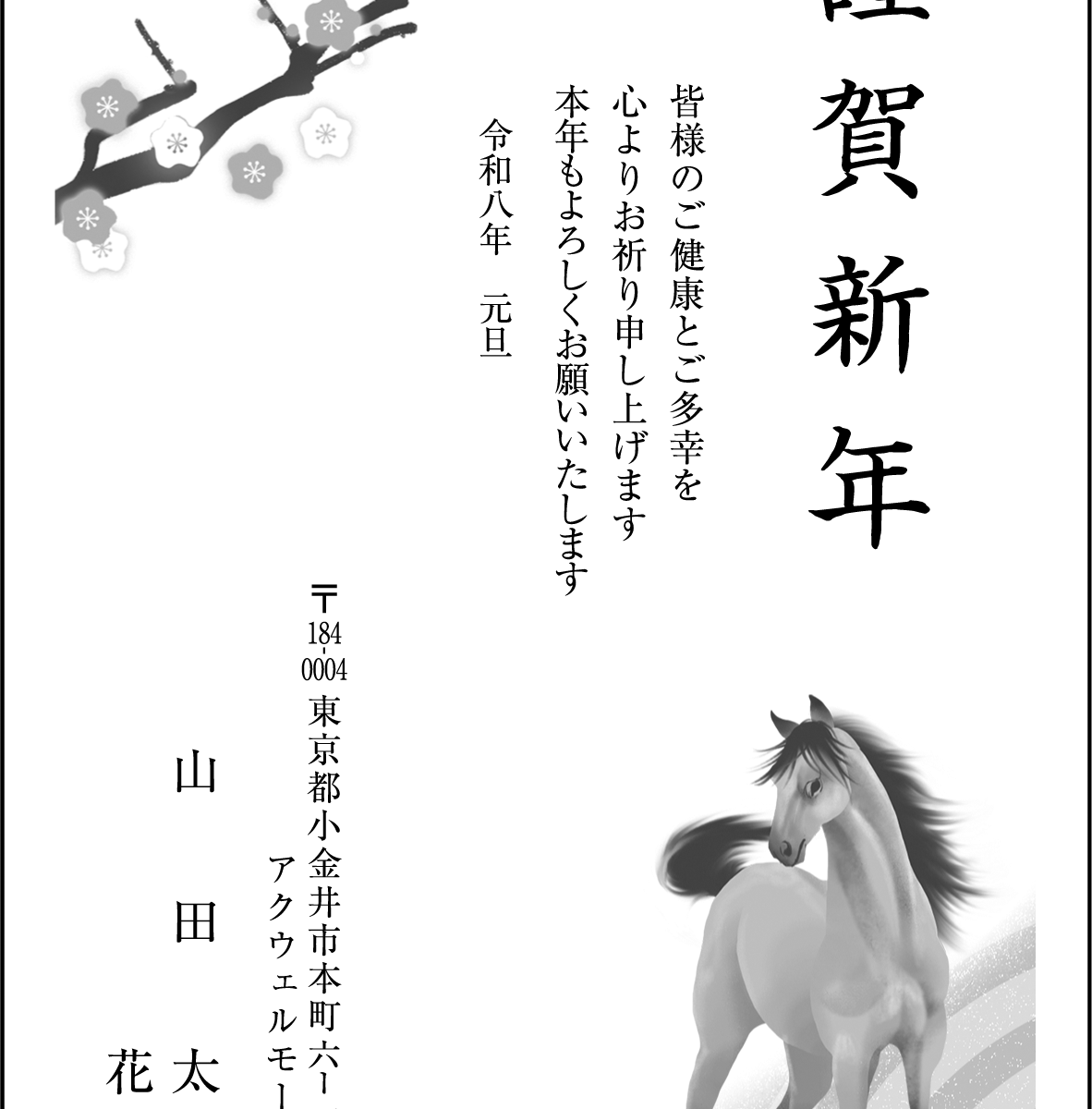 2026年 – 年賀 – モノクロ